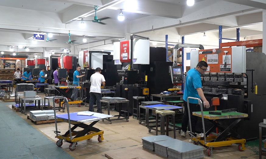 The company's plant covers an area of 1,000 square meters, has a R&D team of more than 4 people, and a production and after-sales team of more than 30 people.It has advanced production equipment including 2 digital punches, 1 laser, 4 bending machines,One 4-station servo automatic riveting machine,and 3 hydraulic rivet machines.